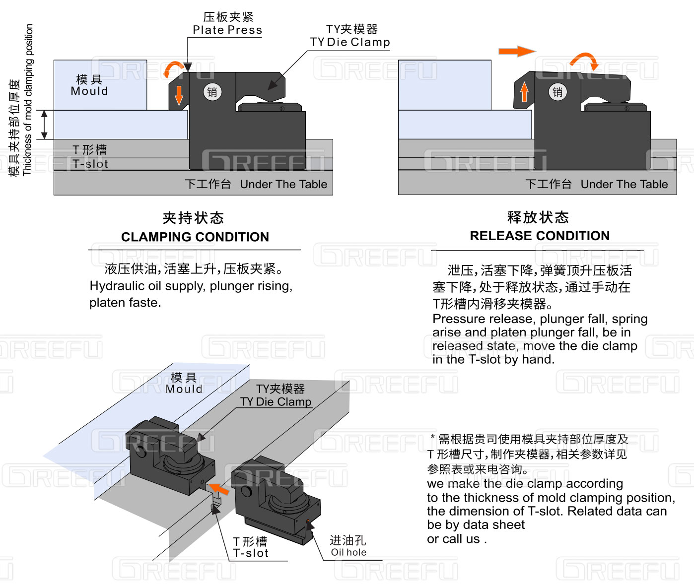 3. 訂貨時請標明 T形槽尺寸 A B C D 尺寸及模具夾持部位厚度(H)尺寸;