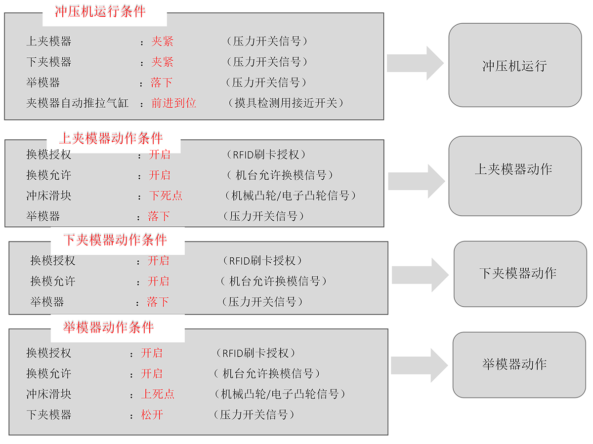采集機臺手動、緊急停止等信號合成換模允許信號,供控制器使用。
