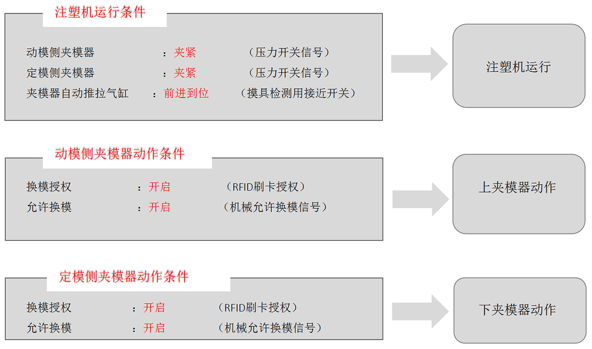 采集機臺手動、緊急停止等信號合成換模允許信號,供控制器使用。