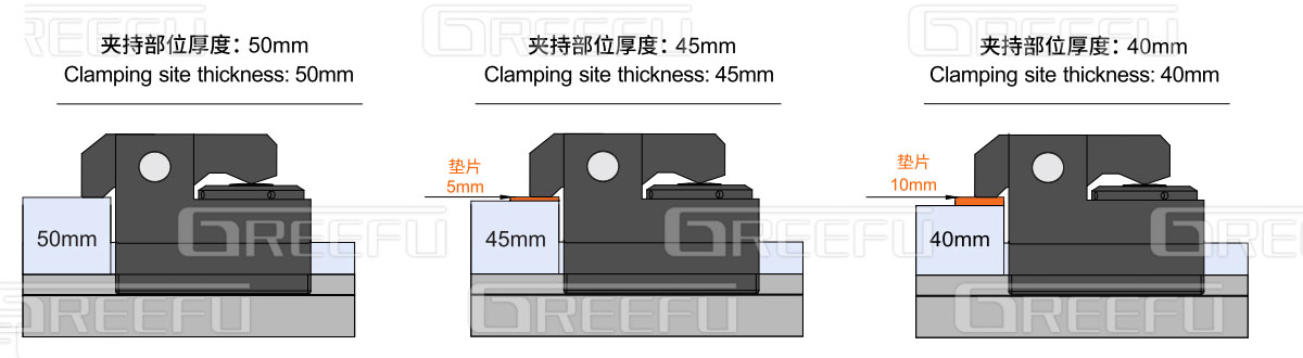 傳統(tǒng)產(chǎn)品:為了使模具安裝板保持一致,必須在模具加持部位安裝墊片,費(fèi)時(shí)費(fèi)力。