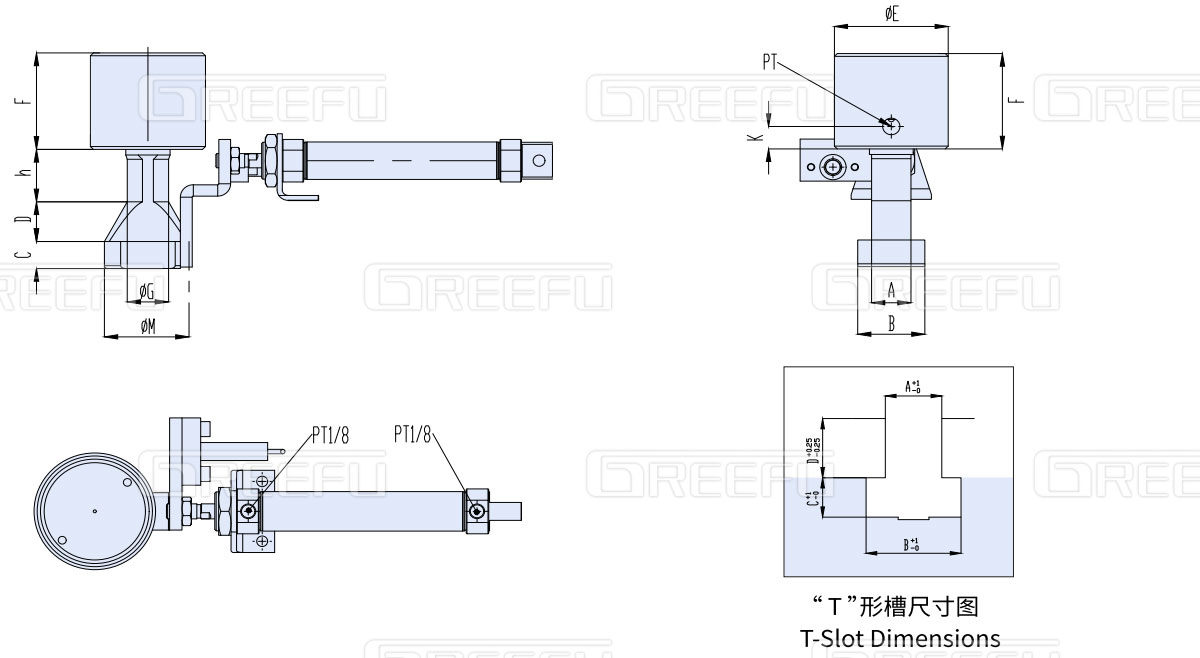 2. A B C D 尺寸有本公司根據 T形槽尺寸而定;