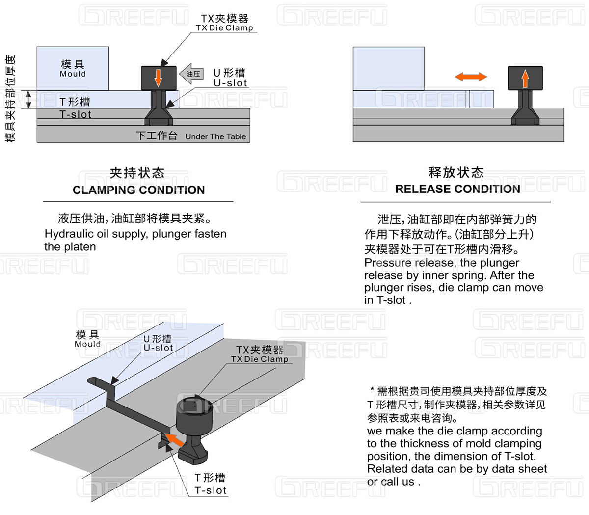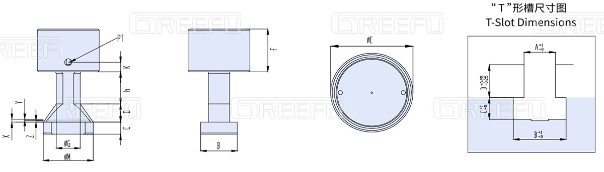 3. 訂貨時請標明 T形槽尺寸 A B C D 尺寸及模具夾持部位厚度(H)尺寸;