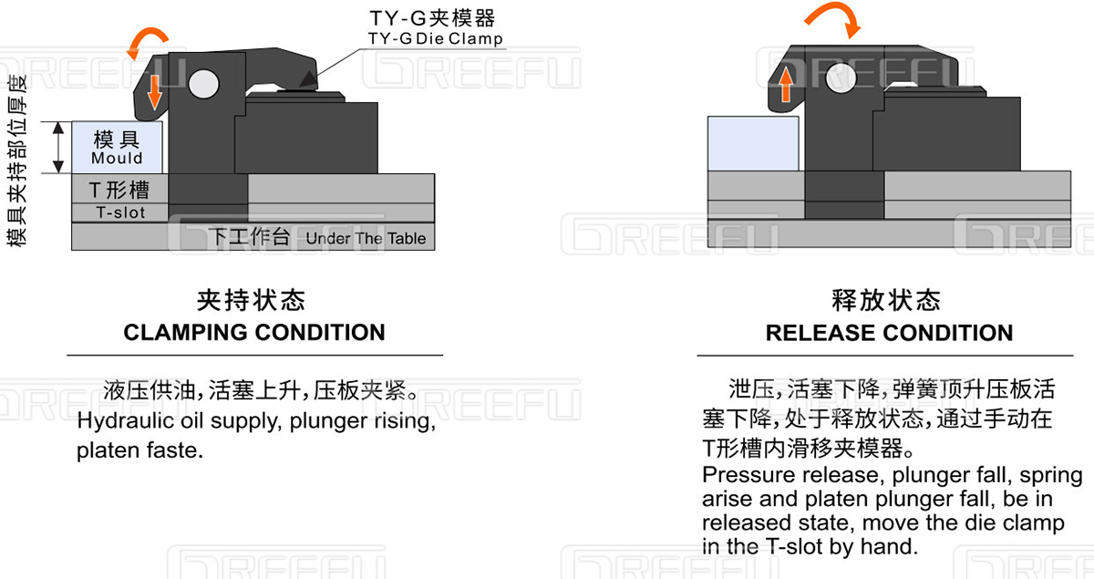 TY-G 夾模器:應(yīng)對夾持部分厚度存在偏差幅度高達(dá)±10mm,無需費(fèi)時費(fèi)力安裝墊片。