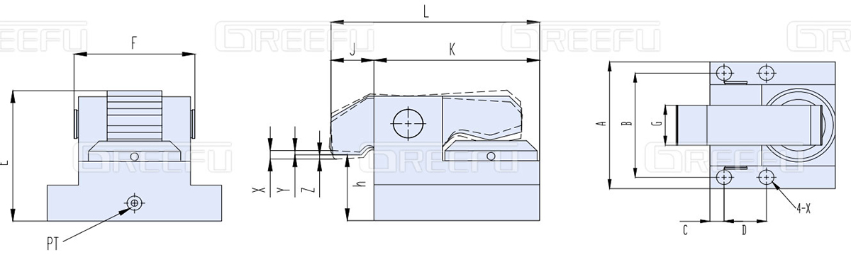 * 需根據(jù)貴司使用模具夾持部位厚度及T形槽尺寸,制作夾模器,相關(guān)參數(shù)詳見參照表或來(lái)電咨詢