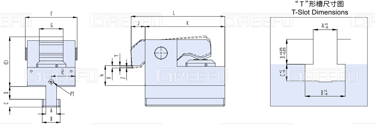 * 需根據(jù)貴司使用模具夾持部位厚度及T形槽尺寸,制作夾模器,相關參數(shù)詳見參照表或來電咨詢