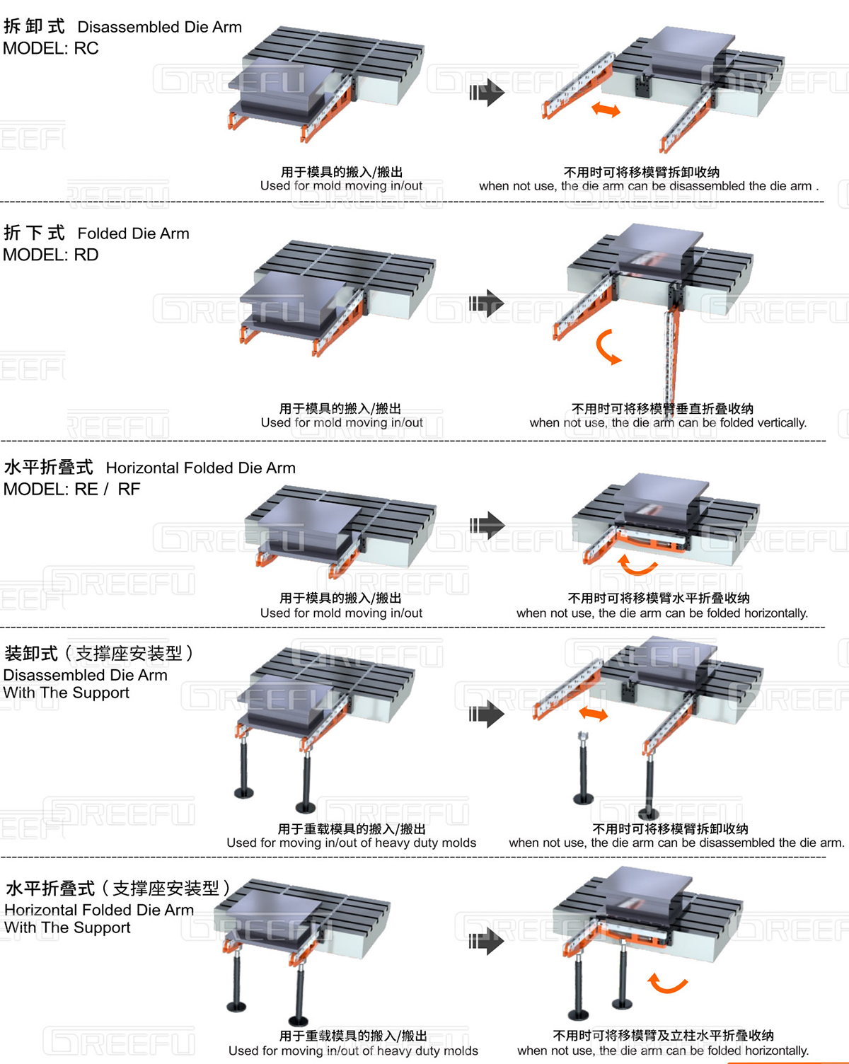 移模臂端部上的止擋塊用于防止模具脫落,為安全裝置。