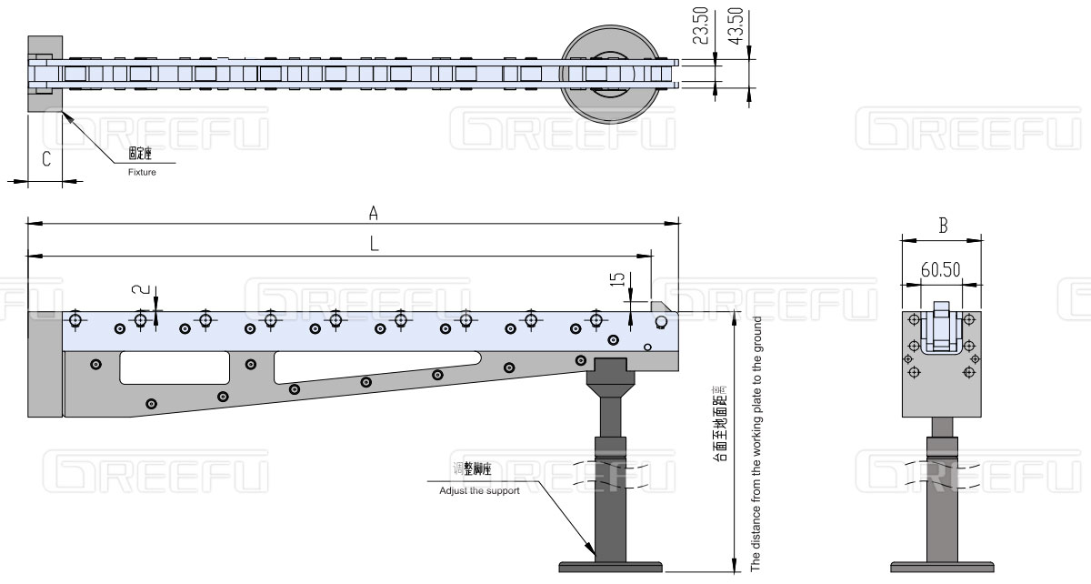 1:移模臂收納方式當(dāng)移模臂引出距離≥1000mm時,需安裝支座