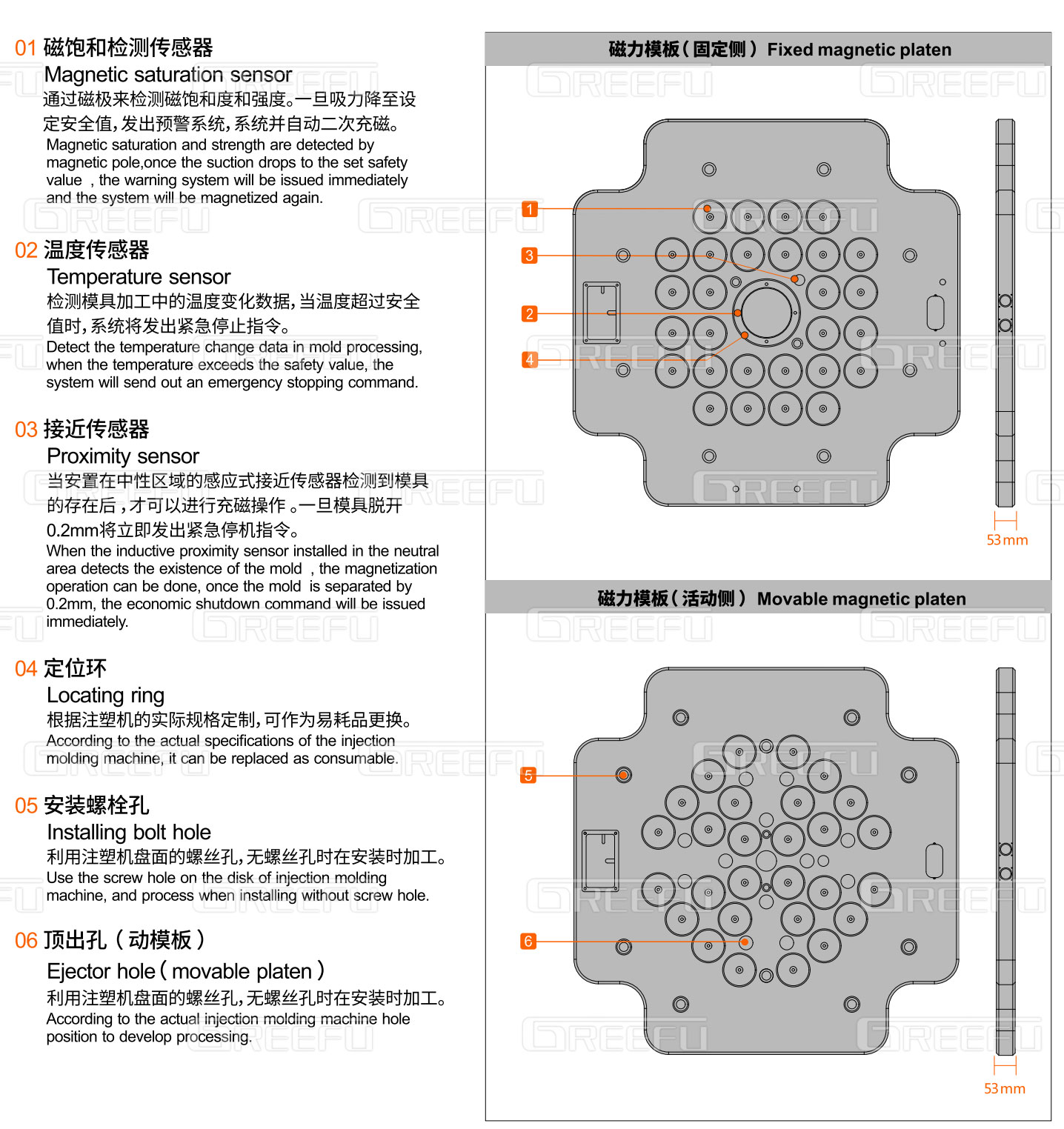 1.帶有中心定位環(huán),頂出孔的磁性定模板和磁性動(dòng)模板